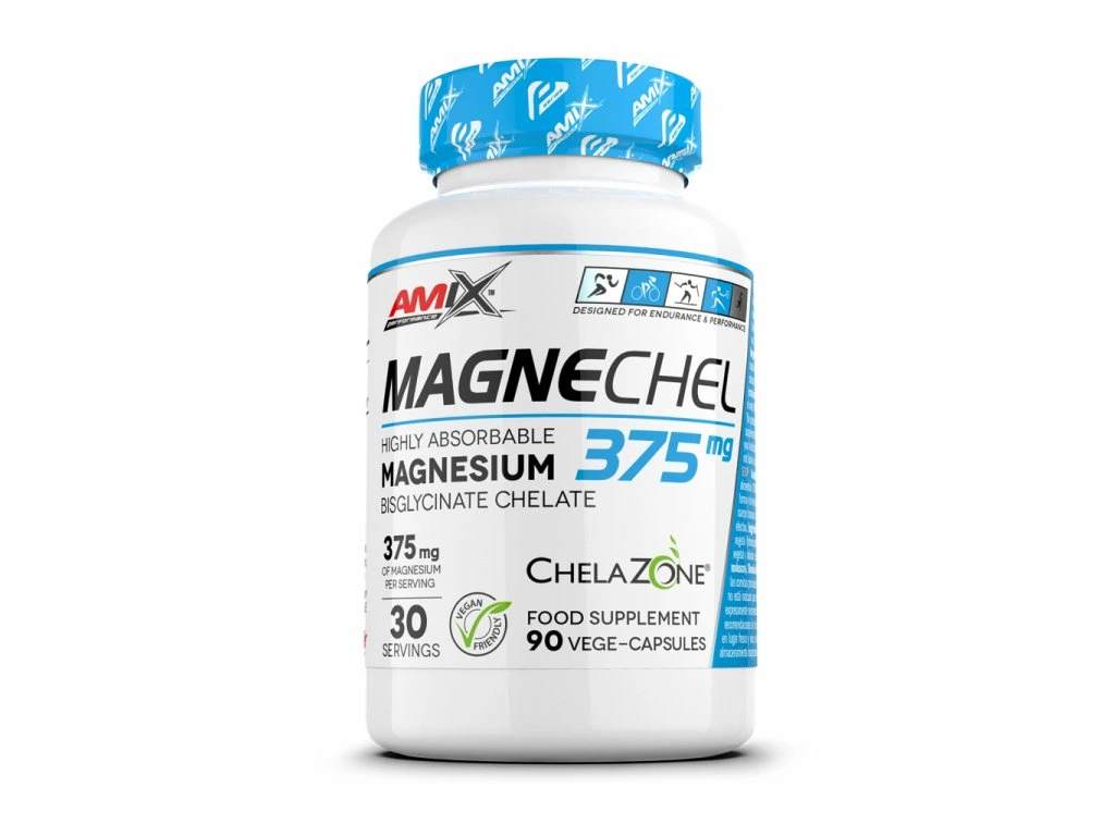 Performance MagneChel je doplněk stravy se 100 % obsahem snadno vstřebatelné formy hořčíku. ChelaZone®magnesium bisglycinát chelát v rostlinné kapsli. ChelaZone® minerální cheláty jsou přirozenou formou minerálu pro lidské tělo. Velmi snadno a rychle se vstřebávají, příznivě ovlivňují celkovou využitelnost minerálu a především jeho účinnost. Doporučené dávkování: vezměte 3 kapsle denně s jídlem zapijte dostatečným množstvím vody Tabulka nutričních hodnot: 3 cps Chelát bisglycinátu hořečnatého – Hořčík 375 mg (100 % RHP) RHP - referenční hodnota příjmu (dříve doporučená denní dávka) Složení: ChelaZone® bisglycinát chelát hořečnatý, protispékavá látka: mikrokrystalická celulóza, rostlinná kapsle (hydroxypropylmethylcelulóza, čištěná voda, barvivo: uhličitan vápenatý), protispékavé látky: rostlinný stearan hořečnatý a oxid křemičitý. Upozornění: Nevhodné pro děti, těhotné a kojící ženy. Výrobek není určen pro děti. Uchovávejte mimo dosah dětí. Nepřekračujte doporučené denní dávkování! Doplňky stravy by neměly být používány jako náhrada pestré stravy. Užívání tohoto doplňku stravy byste měli konzultovat se svým ošetřujícím lékařem. Skladujte při teplotě do 25 °C na chladném suchém místě mimo dosah slunečního záření. Výrobce neručí za náhradu a případné škody způsobené nesprávným použitím nebo skladováním. Upozornění na alergeny: Může obsahovat stopy mléka, vajec, sóji, lepku, korýšů a měkkýšů.Jedná se o doplněk stravy.