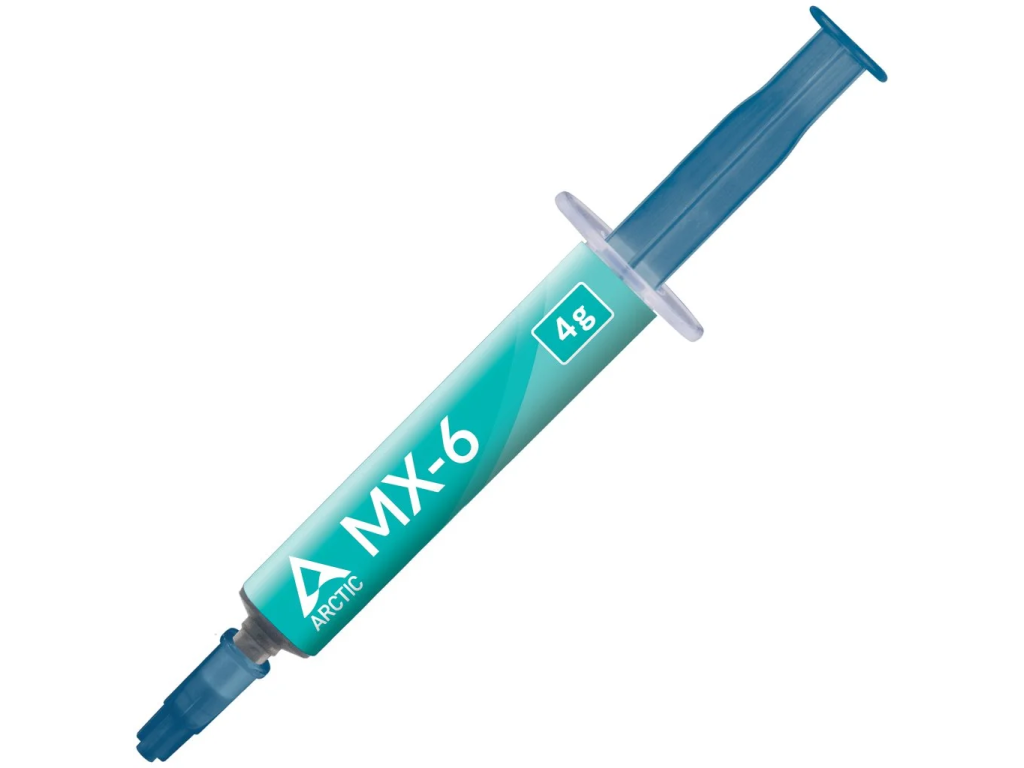 Arctic MX-6 pasta s vysokou tepelnou vodivosťou a nízkym tepelným odporom pre komponenty, ktoré vyžadujú optimálny odvod tepla. Pasta neobsahuje žiadne kovové časti a je elektricky nevodivá.Prierazné napätie: 7,5 kV/mm