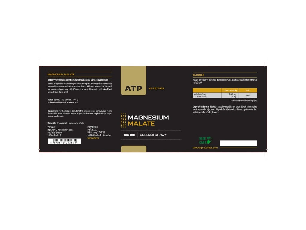 Magnesium malát kombinuje hořčík s jablečnou kyselinou (malát), která se přirozeně vyskytuje v mnoha druzích ovoce. Tento komplex je velmi oblíbená forma hořčíku, která se vyznačuje vysokou biologickou využitelností. Složení a vlastnosti Hořčík (Mg): Základní minerál nezbytný pro více než 300 enzymatických reakcí v těle, včetně syntézy ATP, funkce svalů a nervů, a udržování zdraví kostí. Jablečná kyselina (malát): Organická kyselina, která se podílí na Krebsově cyklu, klíčovém procesu pro výrobu energie v buňkách. Kombinace těchto dvou látek zajišťuje synergický účinek, který podporuje energetický metabolismus a zlepšuje vstřebávání hořčíku. Výhody a Benefity Energetický metabolismus: Hořčík je nezbytný pro tvorbu ATP (adenosintrifosfátu). Kyselina jablečná se podílí na Krebsově cyklu, což je klíčový proces pro produkci energie. I proto je magnesium malát často doporučován pro zvýšení energie a snížení únavy a vyčerpání. Svalová funkce: Důležitý pro svalovou kontrakci a relaxaci. Pomáhá snižovat svalové křeče a zlepšuje regeneraci svalů po fyzické aktivitě. Nervový systém a psychika: Podporuje normální činnost nervové soustavy a psychické funkce. Přispívá k regulaci nálad a emocí. Detoxikace: Některé studie naznačují, že může podporovat vylučování toxického hliníku z těla. Vysoká biologická dostupnost: Magnesium malát je považován za jednu z nejlépe vstřebatelných forem hořčíku, což znamená, že tělo dokáže efektivně tuto formu hořčíku využít. Nízké projímavé účinky: Na rozdíl od některých jiných forem hořčíku (např. citrát nebo oxid) magnesium malát obvykle nezpůsobuje projímavé účinky ani při vyšších dávkách. Podpora energie: Díky kyselině jablečné má energizující účinky, což je výhodné pro lidi trpící únavou. Vhodný pro sportovce: Pomáhá s regenerací svalů a snižuje únavu po tréninku. Odborné klinické studie Studie MagSRT™: Tato studie ukázala, že suplementace magnesium malátem vedla k 30% zvýšení hladiny hořčíku v červených krvinkách za 90 dní a zlepšení symptomů u 63% u účastníků s nízkou hladinou hořčíku. pubmed.ncbi.nlm.nih.gov Biologická dostupnost: Studie z roku 2019 zjistila, že magnesium malát se po jednorázové dávce vstřebává nejrychleji. Nicméně, jiné studie, například z The Journal of Nutrition (Coudray C., 2003), uvádějí, že u organických sloučenin hořčíku nemusí být signifikantní rozdíly v absorpci (např. mezi malátem a bisglycinátem). Důraz je kladen spíše na synergické účinky s kyselinou jablečnou! Doporučené dávkování: 4 tobolky rozdělte do dvou dávek ráno a před tréninkem nebo výkonem případně můžete celou dávku zapít vodou ráno na lačno nebo před výkonem Tabulka nutričních hodnot: 4 tob Malát hořečnatý 2680 mg - z toho hořčík 375 mg (100 % RHP) RHP - referenční hodnota příjmu (dříve doporučená denní dávka) Složení: Malát hořečnatý, rostlinná tobolka (HPMC), protispékavá látka: stearan hořečnatý. Upozornění: Nevhodné pro děti, těhotné a kojící ženy. Uchovávejte mimo dosah dětí. Není náhrada pestré a vyvážené stravy. Nepřekračujte doporučené dávkování.Jedná se o doplněk stravy.