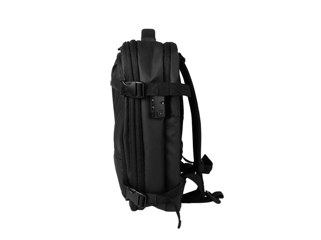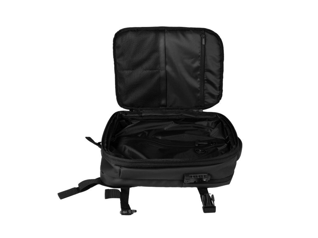Tento batoh do lietadla exceluje aj v organizácii a komforte. Vďaka kufrovému otváraniu sa rozloží úplne naširoko, čo vám uľahčí balenie a poskytne dokonalý prehľad. Vnútorné veko má veľké sieťované vrecko na zips a ďalšie menšie vrecko na drobnosti. Batoh má aj samostatnú polstrovanú priehradku na notebook, predné vrecká na zips a bočné vrecko na fľašu. O pohodlné nosenie sa starajú polstrované popruhy doplnené o hrudnú pracku pre lepšiu stabilitu. Pre jednoduchú kombináciu s väčšou batožinou je na chrbte praktický popruh, ktorým batoh navlečiete na rukoväť kufra. Celý obsah navyše stiahnete bočnými kompresnými popruhmi, ktoré zabezpečia tie najkompaktnejšie rozmery. Ide tak o ideálneho parťáka pre všetkých cestovateľov a digitálnych nomádov. Cestujte inteligentnejšie a užite si každé dobrodružstvo naplno s batohom FlyBag!