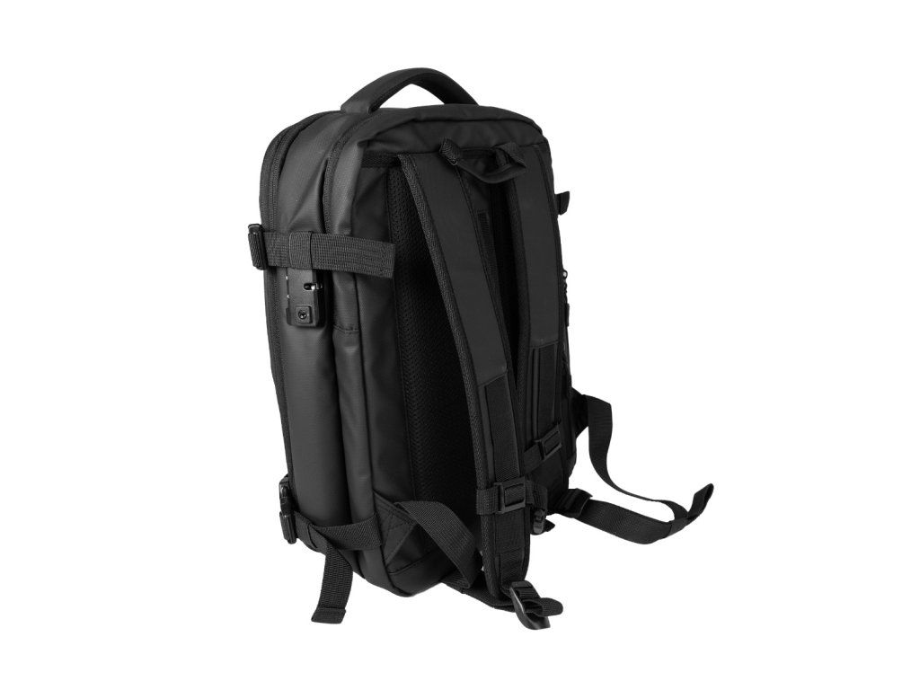 Tento cestovný batoh je vyrobený z odolného a vodoodolného polyesteru, ktorý spoľahlivo ochráni vaše veci za každého počasia. Vnútorná podšívka je navyše z pevného 210D polyesteru. Použitie vákuového systému je jednoduché. Oblečenie vložte do vnútornej priehradky na zips, uzavrite ju a pomocou priloženej ručnej pumpy (alebo klasického vysávača) ľahko odsajte vzduch cez otvor, ktorý potom uzavriete. O bezpečnosť obsahu hlavnej časti batohu sa stará integrovaný zámok TSA, na ktorom si podľa priloženého návodu nastavíte vlastnú číselnú kombináciu.