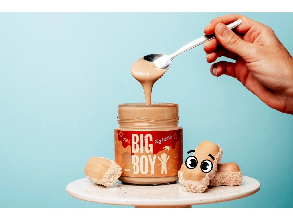 Hrošík se rozvalil do skleničky a přinesl s sebou chuť slavné tyčinky, co jsme milovali jako malí (a milujeme pořád). Je jemný, sladký tak akorát a plný lískových oříšků. Neobsahuje přidaný cukr, zato má spoustu bílkovin – takže mazlit se s ním můžeš bez výčitek. Stačí otevřít, promíchat… a připravit se na pořádnou porci krémového štěstí! Použití: Ideální k dochucení sladkých pokrmů nebo k přímé konzumaci. Případná separace oleje na povrchu není na závadu, jedná se o přirozený jev. Před konzumací promíchej. Tabulka nutričních hodnot: 100 g Energetická hodnota 2356 kJ/569 kcal Tuky 46 g - z toho nasycené mastné kyseliny 19 g Sacharidy 28 g - z toho cukry 5,4 g Vláknina 1,8 g Bílkoviny 19 g Sůl 0,17 g Složení: Proteinový krém s mléčnou příchutí se sladidly 80 % (směs rostlinných tuků a olejů: slunečnicový olej, kokosový olej, kakaové máslo, olej světlice barvířské, sladidlo: maltitol, syrovátková směs, sušené odstředěné mléko, slunečnicový lecitin, vanilin), pražená jádra lískových ořechů (Itálie) 20 %. Může obsahovat stopy arašídů. Nadměrná konzumace může vyvolat projímavé účinky. Upozornění:Skladujte v suchu a nevystavujte přímému slunečnímu záření. Chraňte před teplem. Po otevření spotřebujte do dvou měsíců.Dodatočné parametre