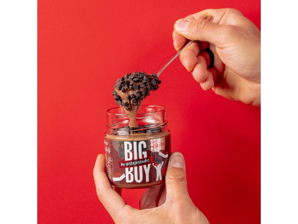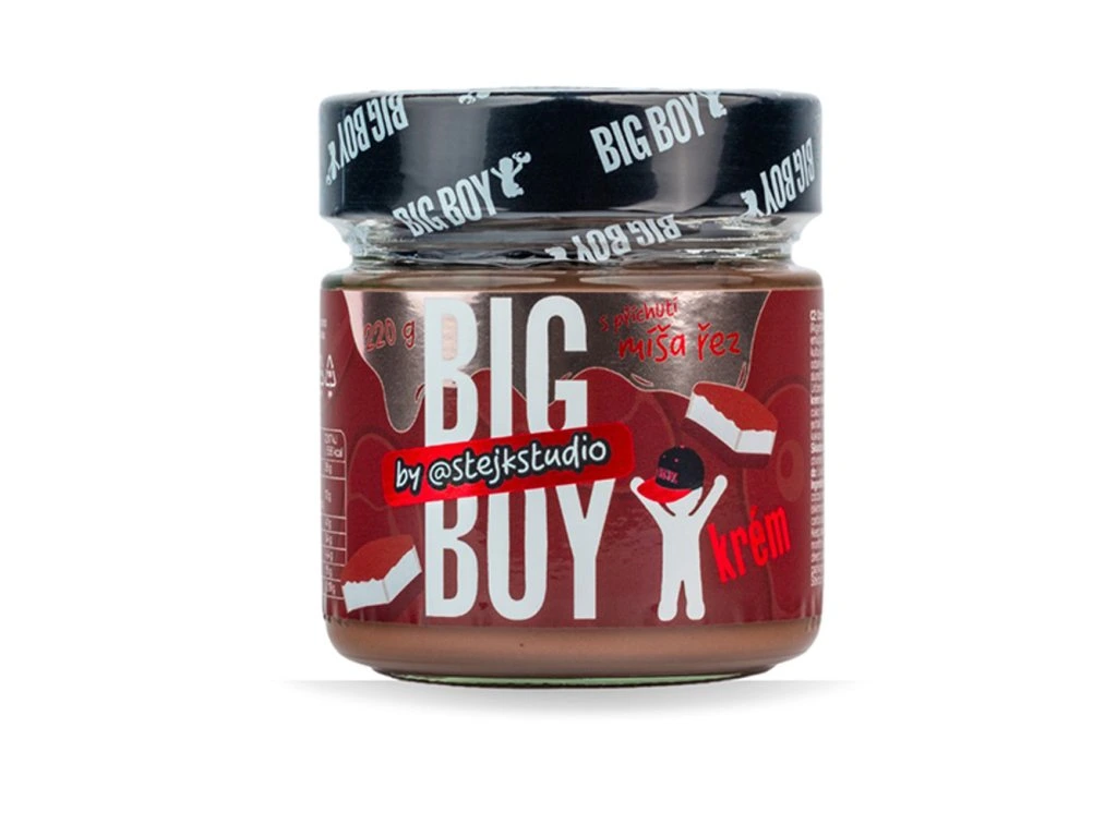 BIG BOY a Stejk spojili síly a přetvořili chuť Míša řezu do neodolatelného oříškového krému. Jemný arašídový základ, jogurt, kakao a kapka ghí vytváří dokonale hladkou a dezertní konzistenci. Uvnitř navíc najdeš kousky hořké čokolády, které každé sousto příjemně zvýrazní. Tahle limitka chutná jako lžička sladkého dětství s dospělým šmrncem. Ideální jen tak, nebo kamkoliv, kde si chceš dopřát něco výjimečného. Sladký upgrade legendárního dezertu. BIG BOY® a Stejk se spojili a vznikla krémová dobrota, která chutná přesně jako Míša řez – jen o lžičku víc. Jemný arašídový krém s jogurtovým šmrncem a pravým kakaem tě přenese zpátky ke stolu, kde na tebe čekal ten nejmilejší dezert dětství. Kousky hořké čokolády uvnitř dodávají každému soustu ten správný křup. Jogurtová svěžest a kapka ghí to celé hladce spojí do luxusní konzistence, kterou nebudeš chtít přestat jíst. Bez zbytečností, bez zástupných chutí – prostě Míša řez, jak ho znáš, v ořechové verzi, co tě srazí na zadek. Mazej si ho na toast, míchej do kaše, nebo si ho dej přímo ze skleničky – jak to dělá Stejk. Použití: Před konzumací promíchejte. Určeno k přímé spotřebě. Tabulka nutričních hodnot: 100 g Energetická hodnota 2317 kJ/556 kcal Tuky 36 g -z toho nasycené mastné tuky 12 g Sacharidy 41 g -z toho cukry 34 g Vláknina 4,4 g Bílkoviny 15 g Sůl 0,19 g Složení: Arašídy loupané pražené (Argentina) 46,23 %, cukr třtinový, hořká čokoláda 11 % (cukr, kakaová hmota, kakaové máslo, emulgátor: sójový lecitin, vanilkový extrakt), ghí, sušený jogurt 10 % (odstředěné mléko, jogurtové kultury), kakao 2,07 % (odtučněný kakaový prášek, regulátor kyselosti: uhličitan draselný). Může odsahovat stopy ostatních skořápkových plodů. Upozornění:Chraňte před teplem a přímým slunečním zářením. Po otevření spotřebujte do dvou měsíců.Dodatočné parametre
