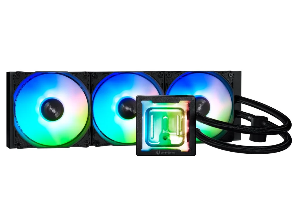 BitFenix Cube 360Vodný chladič navrhnutý na chladenie širokej škály procesorov. Vyznačuje sa vysokou kvalitou, výkonom a spoľahlivosťou. Má tri 120 mm veľké ventilátory s ARGB podsvietením. Odolné opletené hadice sú dlhé 450 mm a vďaka dostatočne širokému priemeru zabezpečujú plynulý prietok chladiacej kvapaliny.
