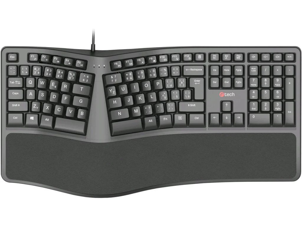 Ergonomická klávesnica C-TECH KB-113E bola navrhnutá pre tých, ktorí trávia veľa hodín prácou. Vďaka špeciálnemu dizajnu a mäkkej podložke vám táto klávesnica pomôže minimalizovať únavu pri dlhej práci. Rovnako ako vertikálna myš pomáha predchádzať alebo zmierňovať následky ochorenia karpálneho tunela.ŠPECIFIKÁCIE: