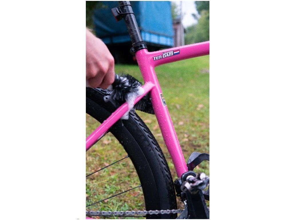 Kefa v tvare kužeľa je ideálna na čistenie úzkych miest na bicykli, ako sú náboje kolies a miesta medzi zadnou a prednou vidlicou. Nástroj má špicatú nylonovú kefu, ktorá vám umožní dostať sa do ťažko prístupných oblastí.APLIKÁCIE: