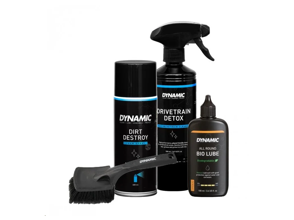 Udržujte svoj bicykel v super čistote veľmi rýchlo a jednoducho s týmto ekologickým balíkom na údržbu bicykla. Zničte všetku špinu pomocou penového spreja, vyčistite si prehadzovačku pomocou prípravku Drivetrain Detox a namažte si reťaz pomocou bio maziva na všetky kolesá. Balenie obsahuje obľúbenú mäkkú umývaciu kefu Dynamic.Čo je vo vnútri?