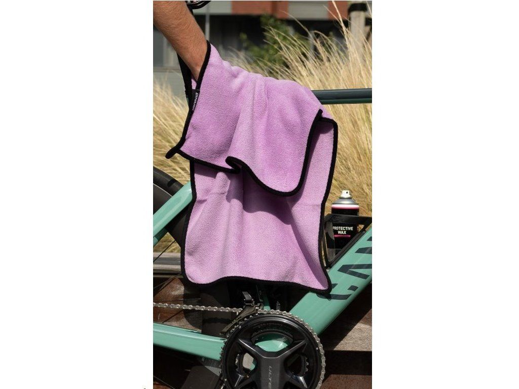 Dokončite proces umývania bicykla použitím uteráka Turbo na sušenie rámu, kolies a ďalších komponentov. Vďaka jemným vláknam je výbornou voľbou na nanášanie ochranného vosku na rám a na ďalšie účely.