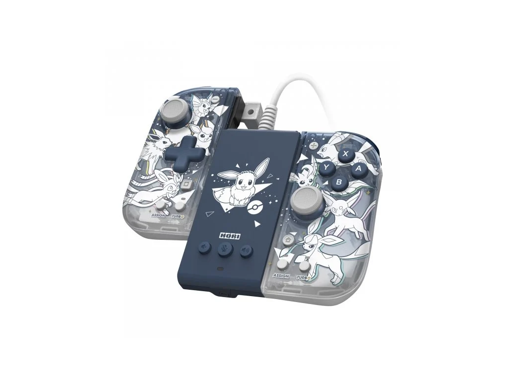 Hráte radšej v režime handheld s lepším úchopom alebo radšej na televízore s pohodlným ovládačom v ruke? Vďaka novému ovládaču HORI Split Pad Pro môžete robiť oboje. Rozložte ovládač tak, aby nahradil joy cony na vašej konzole Nintendo Switch a hrajte v handheldovom režime na cestách, alebo doma pripojte konzolu Nintendo Swtich k televízoru a zostavte si herný ovládač, ktorý vám umožní hrať každú úroveň z pohodlia vášho gauča. Split Pad Compact (Eevee Evolutions) má polopriehľadný vrchný kryt a krásnu grafiku Eevee s vašimi obľúbenými Eevee Evolutions. Je vybavený robustnými analógovými páčkami, presným D-padom a ramennými tlačidlami navrhnutými pre pohodlie a presnosť aj počas dlhých herných seáns. Medzi pokročilé funkcie Split Pad Compact patria priraditeľné zadné spúšte a funkcia Turbo. Pripojenie Split Pad obsahuje konektor na slúchadlá a ovládacie prvky zvuku. Ideálne pre akčné tituly s vysokým tempom, strhujúce dobrodružné hry a mnohé ďalšie žánre. S nástavcom Split Pad Compact môžete hrať, ako chcete!Kľúčové vlastnosti