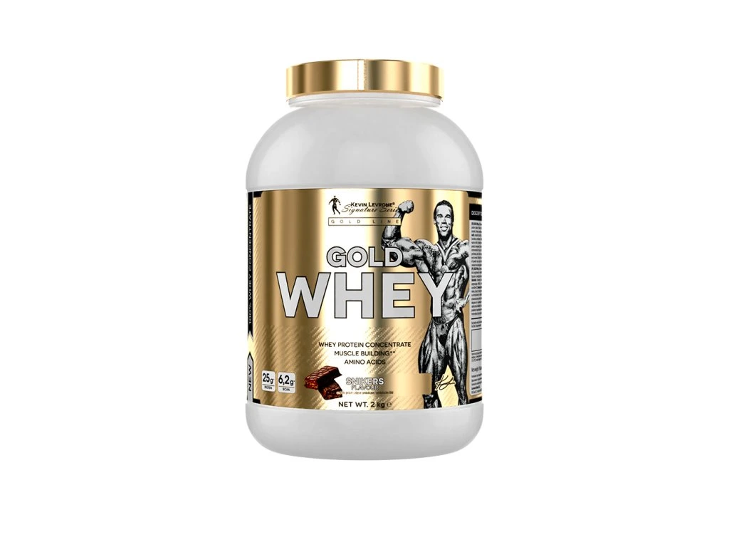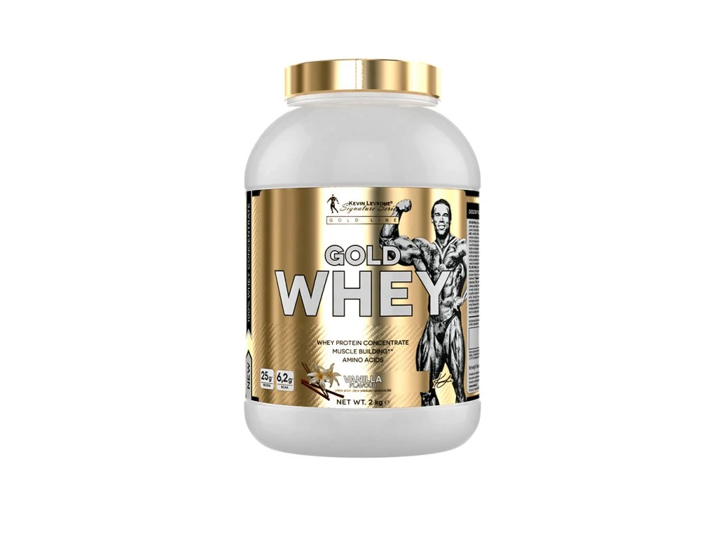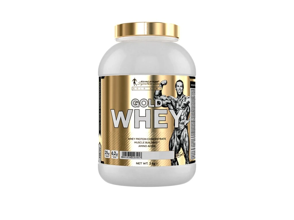 Protein Kevin Levrone Gold Whey je žhavá novinka z dílny legendárního sportovce Kevina Levrona. Rozhodně by neměl chybět na polici žádného sportovce. Kevin Levrone Gold Whey je syrovátkový protein s vysokým obsahem bílkovin (83g/100g). Každá odměrka vám poskytne 25 g kvalitního proteinu a BCAA. Díky vysokému obsahu BCAA (22g/100g) vám Kevin Levrone Gold Whey zaručuje efektivní proces budování svalové hmoty u všech fyzicky aktivních jedinců - od atletů, fotbalistů či stolních tenistů až ke kulturistům a vzpěračům. Kevin Levrone Gold Whey v bodech 25 g bílkovin v každé odměrce poctivá dávka kvalitního proteinu osvědčený výrobce suplementace kvalitní suroviny novinka na trhu Proč doplnit bílkoviny? Bez bílkovin se žádný člověk neobejde. Aktivní jedinci by si ale jejich příjem měli bedlivě hlídat. Tuky a sacharidy má tělo vždy odkud brát, rezervu bílkovin ale bohužel nemáme. Proto je potřeba jejich hladinu neustále doplňovat. Jaká je správná dávka bílkovin? Optimální příjem je mezi 1,2 – 1,4 g/ kg tělesné hmotnosti. Vždy ale do rovnice zahrňte i intenzitu zátěže. Už máte výsledek? Kevin Levrone Gold Whey čeká jen na Vás. Jak podpořit regeneraci? Kromě proteinu jsou na regeneraci skvělé rozvětvené aminokyseliny neboli BCAA (z anglického branched chain amino acid). A i ty najdete právě v tomto produktu. Doporučené dávkování: Rozmíchejte 1 odměrku (30 g) ve 300 ml vody nebo mléka. První dávka se doporučuje vypít ihned po probuzení, druhá ihned po ukončení tréninku. Tabulka nutričních hodnot: 100 g 30 g Energetická hodnota 1608 kJ / 380 kcal 477 kJ / 113 kcal Tuk 4,4 g 1,3 g - z toho nasycené mastné kyseliny 2,5 g 0,8 g Sacharidy 14 g 4,2 g - z toho cukry 4,4 g 1,3 g Bílkoviny 71 g 21 g Sůl 1,30 g 0,39 g Složení: Syrovátkový koncentrát (z mléka), emulgátor (lecitiny), kakao, zahušťovadlo (E466), protispékavá látka (E551), sůl, aroma, sladidlo (sukralóza, acesulfam K). Upozornění: Obsahuje barviva.Nepoužívejte, pokud jste alergičtí na některou ze složek. Nepřekračujte doporučenou denní dávku. Potravinové doplňky by neměly být užívány jako náhrada pestré a vyvážené stravy. Neužívejte při těhotenství nebo kojení. Uchovávejte mimo dosah malých dětí. Skladování: Skladujte na suchém a chladném místě. Chraňte před přímým slunečním zářením.Jedná se o doplněk stravy.