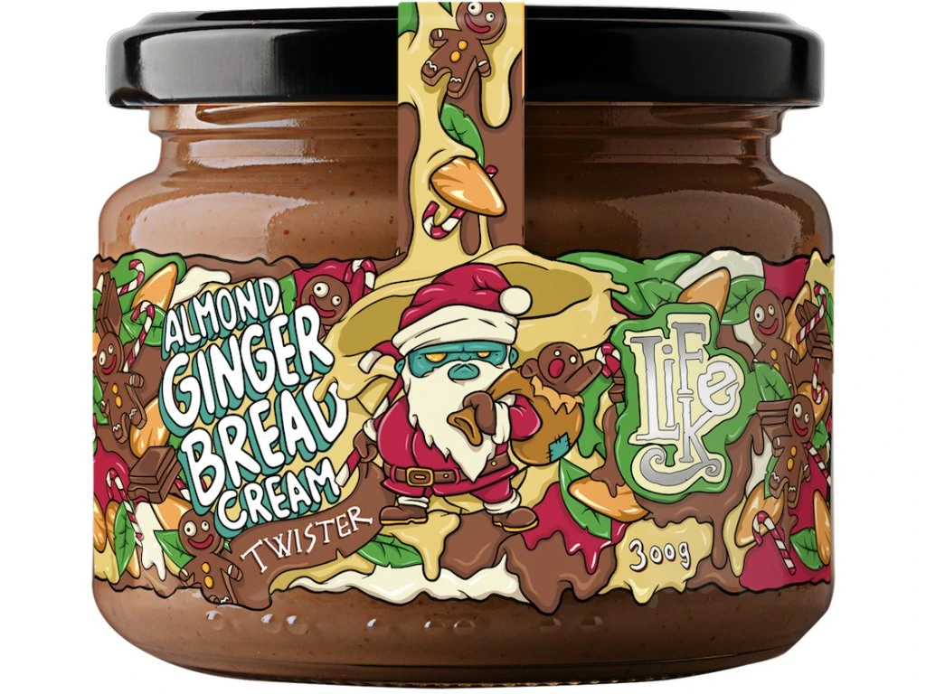 Vybrané kalifornské mandle natural s kvalitní belgickou 70% čokoládou, s bio kokosovým cukrem a olejem, doladěno směsí vlastního perníkového koření - kombinace zázvoru, skořice, hřebíčku, muškátového ořechu a badyánu vykouzlí tu správnou vánoční atmosféru. oříšky nejvyšší kvality vlastní receptura ořechových krémů bez palmového oleje bez lepku vegan vánoční edice vyrobeno v České republice Země původu ořechů: Kalifornie, USA Tabulka nutričních hodnot: 100 g Energetická hodnota 2 494 kJ / 596kcal Tuky 49,67 g - z toho nasycené mastné kyseliny 14,68 g Sacharidy 18,13 g - z toho cukry 15,81 g Bílkoviny 14,63 g Vláknina 5,18 g Sůl 0 g Složení: 68 % mandle natural pražené, 10 % čokoláda sedmdesátiprocentní (kakaová hmota, cukr, kakaové máslo, sójový lecitin, vanilka bourbon), 10 % kokosový cukr, 10 % kokosový olej , 2 % perníkové koření (badyán, skořice, anýz, nové koření, muškát). Upozornění:Nevystavujte slunečnímu záření. Skladujte do teploty 25 °C a relativní vlhkosti 70 %. Po otevření spotřebujte do 14 dnů. Minimální trvanlivost do: viz. spodní část obalu. Alergeny jsou zvýrazněny tučně. Usazenina oleje na povrchu je přirozený jev, stačí krém promíchat.Dodatočné parametre