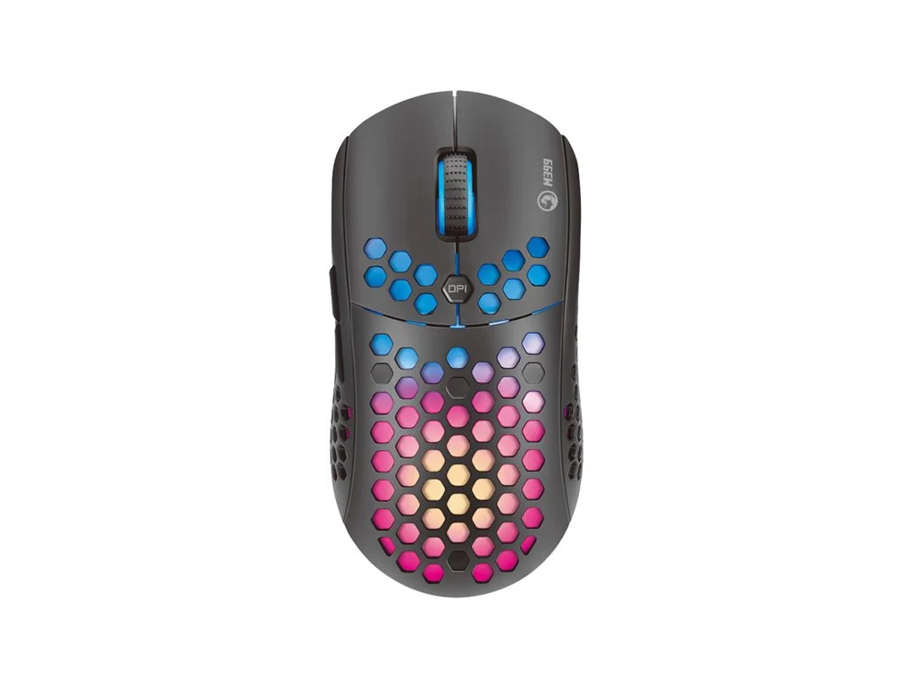 Veľkou výhodou tejto hernej myši je jej hmotnosť. Vďaka perforovanému dizajnu pripomínajúcemu včelie plásty (Honeycomb design), ktorý zároveň dodáva myši jedinečný vzhľad, je jej hmotnosť len 76 gramov. Preto sa s ňou počas hrania hier ľahšie manipuluje. Pri dlhodobej práci a hraní nebudete pociťovať únavu. Ergonomický tvar zaisťuje oporu dlane, čo je veľkou výhodou. Podsvietenie RGB bude príjemné na pohľad.