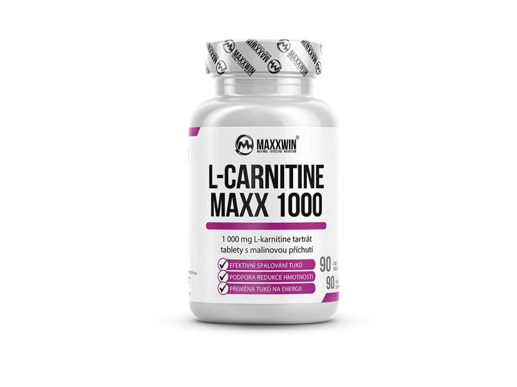 Doplňek stravy určen pro redukci váhy, v příjemné formě kousacích tablet se skvělou malinovou chutí. L-karnitin je non-esenciální aminokyselina, která usnadňuje přenos mastných kyselin do mitochondriální membrány a jejich přeměnu na buněčnou energii, a tím nám pomáha zbavit se nadbytečných kalorií. Použitím vysoce koncentrovaného L-karnitin tartrátu je zaručeno rychlé vstřebávání a efektivita. Spojením pravidelné fyzické aktivity a suplementu L-CARNITINE MAXX 1000 dosáhnete výsledků, o kterých jste vždy snili! redukce váhy přeměna tuku na buněčnou energii chutné kousací tablety Doporučené dávkování: užívejte 1-2x denně 1 tabletu nepřekračujte doporučené denní dávkování Tabulka nutričních hodnot: 1 cps L-Karnitin tartrát 1000 mg Složení: L-karnitin tartrát, plnidlo: mikrokrystalická celulóza, dextróza, plnidlo - karboxymetyl celulóza, fruktóza, protispékavá látka: stearan hořečnatý, sladidlo: sukralóza, aroma malina, protispékavá látka: fosforečnan vápenatý. Upozornění:Doplněk stravy. Výrobek není určen jako náhrada pestré stravy. Skladujte v suchu při teplotě do 25 °C. Chraňte před přímým slunečním zářením. Není určeno pro děti, těhotné a kojící ženy. Ukládejte mimo dosah dětí. Výrobce neručí za škody vzniklé nevhodným použitím nebo skladováním. Minimální trvanlivost uvedena na obalu.Jedná se o doplněk stravy.