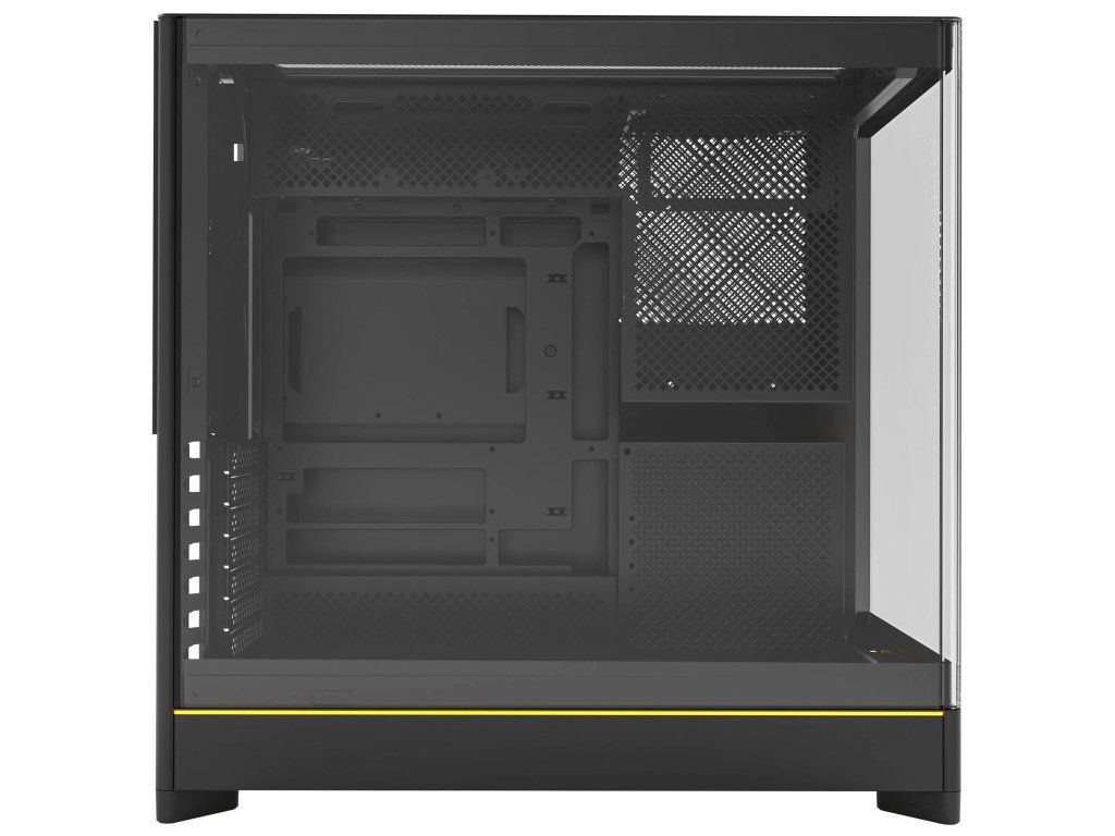 Predný panel zo zakriveného tvrdeného skla s uhlom 8° - minimalistický vzhľad, maximálny výhľad na komponenty.