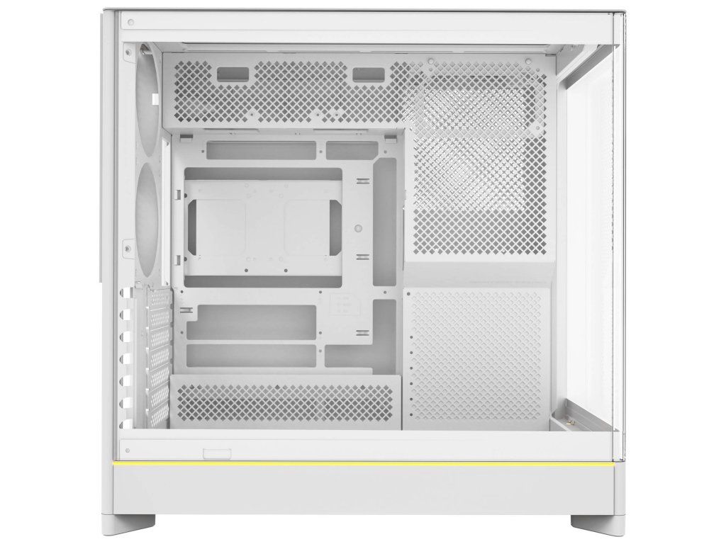 Predný panel zo zakriveného tvrdeného skla s uhlom 8° - minimalistický vzhľad, maximálny výhľad na komponenty.