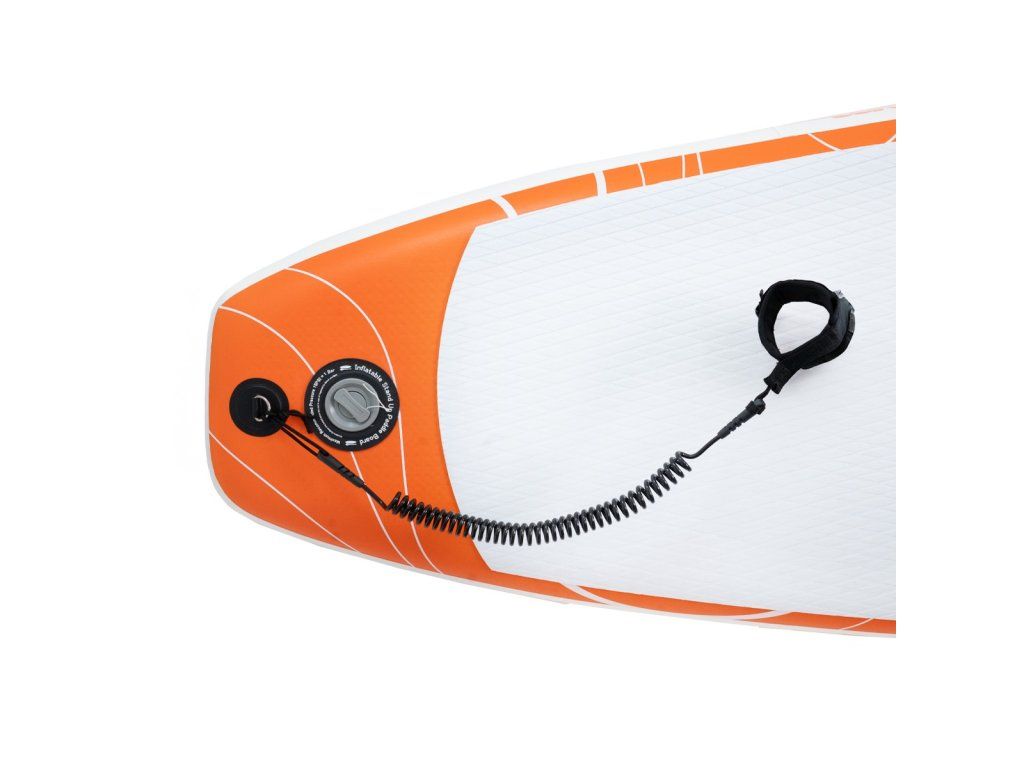 Chýbať nemôže ani vodítko, tzv. leash, ktorým si dosku pripevníte k nohe. Vďaka tomu vám paddleboard nikdy neupláva. V balení nájdete aj 3 odnímateľné plutvy, ktoré zabezpečia lepšiu stabilitu, rovný smer jazdy aj jednoduchšie ovládanie paddleboardu. Pri plutí oceníte aj elastické šnúry, pod ktoré bezpečne uchytíte napríklad vodotesný vak (dry bag) s osobnými vecami.