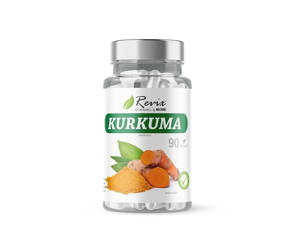 Kurkuma neboli indický šafrán je bylina řadící se do kategorie tzv. adaptogenů, tedy látek upravujících hormonální rovnováhu těla. Revix Kurkuma obsahuje vysoké množství 500 mg v jedné kapsli s vysokým obsahem kurkuminu (95 %). Doporučené dávkování: užívejte 1 kapsli denně nepřekračujte doporučenou denní dávku Tabulka nutričních hodnot: 1 cps Kurkuma extrakt (95% Kurkuminů) 500 mg Složení: Kurkuma extrakt (95 % Kurkuminů), rostlinná kapsle z hypromelózy, pomocná látka oxid křemičitý. Upozornění:Doplněk stravy s rostlinnými extrakty. Výrobek není určen jako náhrada pestré stravy. Skladujte v suchu při teplotě do 25 °C. Chraňte před přímým slunečním zářením. Ukládejte mimo dosah dětí. Výrobce neručí za škody vzniklé nevhodným použitím nebo skladováním.Jedná se o doplněk stravy.
