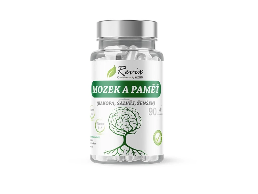 Revix MOZEK A PAMĚŤ představuje přelomovou nootropní formuli, která synergicky kombinuje to nejlepší z přírody a vědy pro maximální podporu mozkových funkcí. Tento unikátní doplněk stravy byl navržen s jediním cílem - pomoci vám dosáhnout vrcholného mentálního výkonu v každém okamžiku vašeho života, a to jak z pohledu lepší paměti a rychlosti učení, tak pohledu snížení únavy a zvýšení soustředění. Zlepšení paměti a schopnosti učení Zvýšení mentální ostrosti a koncentrace Podpora kognitivních funkcí Ochrana mozkových buněk před oxidačním stresem Přirozené zvýšení energie bez nežádoucích výkyvů Zmírnění mentálního stresu a únavy Revix Mozek a Paměť obsahuje pečlivě vyváženou směs vzájemně se podporujících se látek: Bacopa Monnieri (bakopa drobnolistá) - tradiční ajurvédská bylina s tisíciletou historií používání pro podporu kognitivních funkcí. Šalvěj lékařská - známá pro své neuroprotektivní účinky a obsah kyseliny rozmarýnové, která pomáhá chránit mozkové buňky před poškozením. Ženšen pravý - adaptogenní rostlina podporující celkovou vitalitu organismu a odolnost vůči stresu. Obsažené ginsenosidy přispívají k lepšímu prokrvení mozku. L-Tyrosin - aminokyselina klíčová pro tvorbu neurotransmiterů dopaminu a noradrenalinu, které jsou zásadní pro motivaci, soustředění a dobrou náladu. Komplex vitamínů skupiny B (B3, B5, B6, B12) - nezbytné pro správné fungování nervového systému, tvorbu energie a optimální přenos nervových impulzů. První zlepšení koncentrace a mentální energie můžete zaznamenat již po 2-3 dnech pravidelného užívání. Plný potenciál Revix Mozek a Paměť se rozvine po 4-6 týdnech, kdy dochází k hlubším změnám v mozkových funkcích a struktuře. Pro dosažení optimálních výsledků doporučujeme dlouhodobé užívání po dobu minimálně 3 měsíců. Doporučené dávkování: užívejte 1 kapsli 1-2x denně nepřekračujte doporučenou denní dávku Tabulka nutričních hodnot: 1 cps (% RHP) Bakopa drobnolistá extrakt 200 mg L-Tyrosine 120mg Šalvěj lékařská extrakt 100 mg Ženšen pravý extrakt 100 mg Vitamín B3 16 mg (100 %) Vitamín B5 6 mg (100 %) Vitamín B6 1,4 mg (100 %) Vitamín B12 2,5 mcg (100 %) RHP - referenční hodnota příjmu (dříve doporučená denní dávka) Složení: Extrakt z bakopy drobnolisté 10:1 (Bacopa Monnieri, celá bylina), rostlinná kapsle z hypromelózy, L-Tyrosine veganský, extrakt ze šalvěje lékařské 10:1 (2,5% kyseliny rozmarýnové) sage extrakt, stvol a list), extrakt z ženšenu pravého ((80% ginsenosidů), ginseng extrakt, stvol a list), vitamín B3 (niacin), pomocká látka: oxid křemičitý, vitamín B5 (kyselina pantothenová), vitamín B6 (pyridoxin), vitamín B12 (kyanokobalamin). Upozornění: Doplněk stravy s rostlinnými extrakty a vitamíny. Výrobek není určen jako náhrada pestré stravy. Skladujte v suchu při teplotě do 25 °C. Chraňte před přímým slunečním zářením. Ukládejte mimo dosah dětí. Výrobce neručí za škody vzniklé nevhodným použitím nebo skladováním.Jedná se o doplněk stravy.