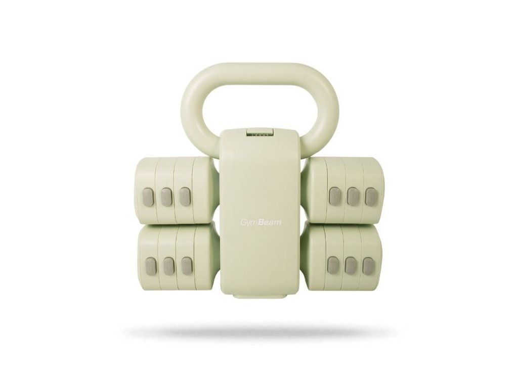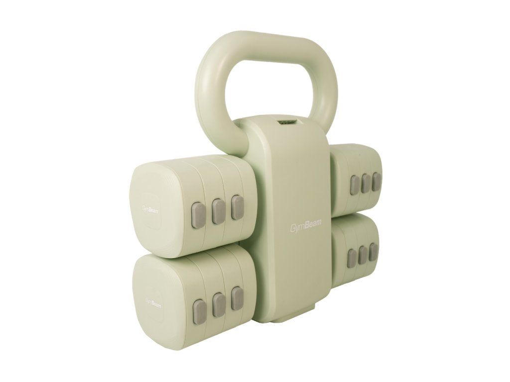 Základom sady sú dve jednoručné činky, ktorých záťaž môžete jednoducho upravovať pridávaním alebo odoberaním malých 0,25 kg záťažových diskov, čím si nastavíte celkovú váhu činky v rozmedzí 1–2,5 kg. Môžete si tak presne prispôsobiť váhu na cviky, ako sú bicepsové zdvihy, tlaky na ramená alebo výpady. Kúzlo celej sady spočíva v priloženom adaptéri s kettlebell gripom. Ak chcete cvičiť swingy alebo goblet drepy, jednoducho vezmete obe nastavené jednoručky, vložíte ich do adaptéra a zacvaknete. Pevný zámok ich bezpečne zaistí a vy máte v priebehu okamihu k dispozícii funkčný kettlebell 2–5,5 kg.