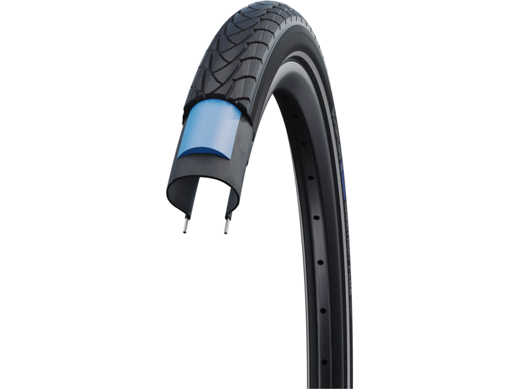 Nepreniknuteľný plášť. Najpredávanejšia pneumatika Schwalbe.Najlepšia ochrana proti prepichnutiu. Okrem vynikajúcej ochrany presviedča mnohými vnútornými hodnotami. Patentovaná, 5 mm hrubá vložka SmartGuard má oproti všetkým ostatným napodobeninám výraznú výhodu v nízkom valivom odpore. Recyklácia. Na výrobu pneumatiky SmartGuard používame aj čiastočne recyklovanú gumu zo starých latexových výrobkov. bočný plášť proti starnutiu. Vydrží typické poškodenie pri jazde pod nedostatočným tlakom podstatne dlhšie, než sa objavia nepríjemné praskliny. Pripravené na e-bike.Výkonný dizajn
