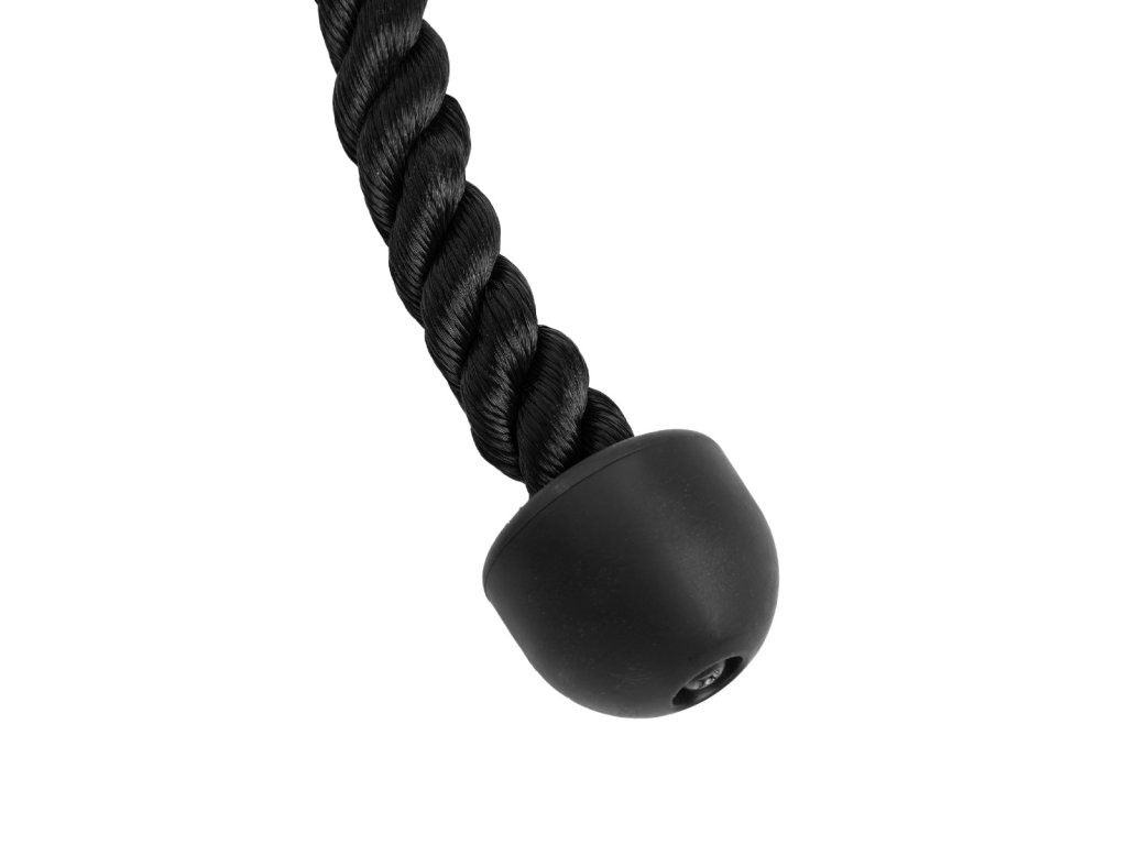 Tricepsové lano na kladku je praktický adaptér na cvičenie, navrhnutý pre maximálnu efektivitu pri tréningu hornej časti tela. Je vyrobené z pevne splietaného syntetického vlákna, ktoré vyniká odolnosťou voči preťaženiu a roztrhnutiu aj pri intenzívnom používaní. Kľúčovým prvkom je posuvné kovové oko, ktoré umožňuje bezpečné uchytenie na akúkoľvek kladkovú vežu alebo závesnú kladku. Pre maximálny komfort je lano na triceps zakončené veľkými gumenými protišmykovými úchopmi, ktoré zabraňujú jeho vyšmyknutiu z rúk počas cvičenia.
