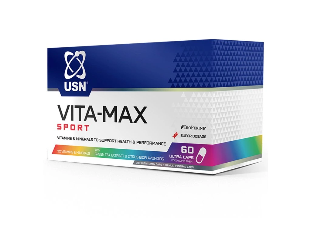 Vita-Max Sport Ultra kombinuje 22 vitamínů a minerálů s extraktem ze zeleného čaje, BioPerine® a citrusovými bioflavonoidy pro podporu energie, svalů a regenerace. Ideální nejen pro aktivní sportovce, kteří chtějí podávat maximum. Bez obsahu cukru, umělých barviv a zbytečných přísad – jen čistá podpora výkonu. Doporučené dávkování: 2 kapsle denně: užívejte 1 multivitamínovou kapsli a multiminerální kapsli denně se snídaní nepřekračujte doporučené denní dávkování Tabulka nutričních hodnot: Vitamíny 1 kapsle (% RHP) Vitamín A 800 mcg (100 %) Vitamín D 10 mcg (200 %) Vitamín E 24 mg (200 %) Vitamín C 290 mg (363 %) Thiamin 19 mg (1727 %) Riboflavin (Vitamín B2) 20 mg (1429 %) Niacin 31 mg (194 %) Vitamin B6 18 mg (1286 %) Kyselina listová 400 mcg (200 %) Vitamin B12 23 mcg (920 %) Biotin 100 mcg (200 %) Kyselina Panthothenová 12 mg (200 %) Minerály 1 kapsle (% RHP) Draslík 75 mg (4 %) Vápník 100 mg (13 %) Hořčík 191 mg (51 %) Železo 3 mg (21 %) Zinek 15 mg (150 %) Měď 0,5 mg (50 %) Mangan 1,8 mg (90 %) Selen 75 mcg (136 %) Chrom 150 mcg (375 %) Jód 150 mcg (100 %) *% RHP - referenční hodnota příjmu (dříve doporučená denní dávka) Extrakty 1 kapsle (% RHP) Extrakt z plodů Citrus Aurantium 100 mg - z toho citrusové bioflavoidy 50 mg Extrakt z listů Artyčoku (5 % Cyranů) 80 mg Extrakt z dýňových semínek 10:1 60 mg Extrakt z listů kopřivy 4:1 60 mg Extrakt z listů zeleného čaje 60 mg - z toho polyfenoly 59 mg - z toho katechiny 48 mg - z toho EGCG 30 mg - z toho kofein 4,8 mg Kyselina alfa-lipoová (ALA) 10 mg BioPerine® (extrakt z černého pepře – Piper nigrum) 1 mg - z toho piperin 950 mg Složení: Multivitamínový komplex: kyselina askorbová, želatinová kapsle (hovězí), extrakt z plodů Citrus aurantium, plnidlo (mikrokrystalická celuóza), extrakt z listů artyčoku (Cynara scolymus), extrakt z dýňových semínek (Cucurbita pepo), extrakt z listů kopřivy (Urtica dioica), extrakt z listů zeleného čaje (Camellia sinensis), alfa-tokoferylacetát, vitamín B3 (Nikotinamid), thiamin-mononitrát, pyridoxin-hyrochlorid, riboflavin, protispékavá látka (hořečnaté soli mastných kyselin), D-panthothenát vápenatý, kyselina alfa-lipoová (ALA), BioPerine® [extrakt z černého pepře (Piper nigrum) (plody)], retinyl-acetát, kyselina listová, D-biotin, kyanokobalamin, cholekalciferol. Multiminerální komplex: bisglycinát hořečnatý, oxid hořečnatý, bisglycinát vápenatý, želatinová kapsle (hovězí), uhličitan vápenatý, chlorid draselný, bisglycinát zinečnatý, barvivo (černý oxid železitý), protispékavá látka (hořečnaté soli mastných kyselin), bisglycinát železnatý (železo, bisglycinát manganatý, bisglycinát měďnatý, chlorid chromitý [chrom (III)], jodid draselný, seleničitan sodný). Může obsahovat stopy ořechů (včetně arašídů), mléka, sóji, lepku, vajec, ryb, korýšů a siřičitanů. Upozornění: Stejně jako u všech doplňků stravy se prosím poraďte se svým lékařem (zejména pokud máte zdravotní potíže nebo užíváte léky). Není určeno pro těhotné a kojící ženy a děti mladší 18 let. Neužívejte na lačný žaludek. Nepřekračujte doporučenou denní dávku. Neslouží jako náhrada pestré a vyvážené stravy a zdravého životního stylu. Ukládejte mimo dosah dětí. Skladujte v suchu, mimo dosah slunečního záření.Jedná se o doplněk stravy.