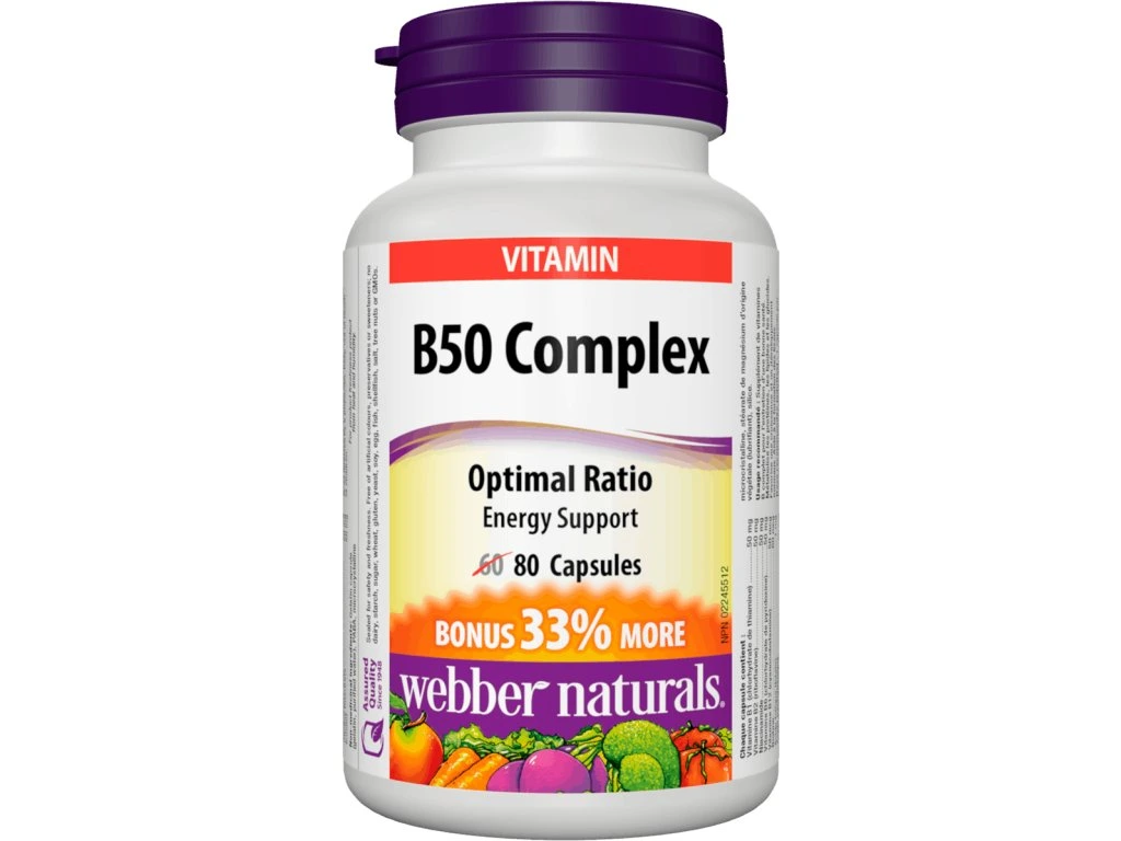 Doplněk stravy s obsahem kompletního spektra vitamínů skupiny B včetně cholinu a inozitolu. Doporučené dávkování: užívejte 1 kapsli denně Tabulka nutričních hodnot: 1 tbl % RHP vitamín B1 (thiamin hydrochlorid) 50 mg 4545 % vitamín B2 (riboflavin) 50 mg 3571 % vitamín B3 (nikotinamid) 50 mg 313 % vitamín B6 (pyridoxin hydrochlorid) 50 mg 3571 % kyselina pantothenová (D-pantothenát vápenatý) 50 mg 833 % cholin bitartrát 50 mg inositol 50 mg kyselina listová (folát) 1000 mcg 500 % biotin 600 mcg 120 % vitamín B 12 (kyanokobalamin) 50 mcg 2000 % RHP - referenční hodnota příjmu (dříve doporučená denní dávka) Složení: V jedné kapsli: vitamín B1 (thiamin hydrochlorid) 50 mg (4545 % RHP), vitamín B2 (riboflavin) 50 mg (3571 % RHP), vitamín B3 (nikotinamid) 50 mg (313 % RHP), vitamín B6 (pyridoxin hydrochlorid) 50 mg (3571 % RHP), kyselina pantothenová (D-pantothenát vápenatý) 50 mg (833 % RHP), cholin bitartrát 50 mg, inositol 50 mg, kyselina listová (folát) 1000 mcg (500 % RHP), biotin 60 mcg (120 % RHP), vitamín B 12 (kyanokobalamin) 50 mcg (2000 % RHP), RHP - referenční hodnota příjmu (dříve doporučená denní dávka) Přídatné látky a další složky: želatinová kapsle (želatina, čištěná voda, PABA), protispékavá látka: mikrokrystalická celulóza, lešticí látka: rostlinný stearan hořečnatý, protispékavá látka: oxid křemičitý Upozornění: Doplněk stravy. Skladujte v suchu při teplotě do 25 °C, pečlivě uzavřené, chraňte před přímým slunečním zářením a před mrazem. Uchovávejte mimo dosah dětí. Přípravek není určen pro děti, těhotné a kojící ženy. Výrobce neručí za škody vzniklé nevhodným použitím nebo skladováním. Výrobek není určen jako náhrada pestré stravy. Nepřekračujte denní doporučenou dávku. Spotřebujte do data uvedeného na obalu. Obsah v 1 balení: 80 kapslí Počet denních dávek v jednom balení: 80Jedná se o doplněk stravy.