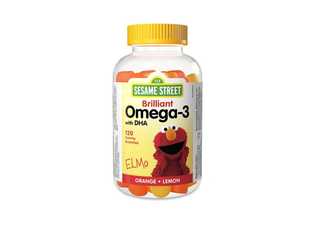 Sesame Street Omega-3 with DHA 120 Gummies je doplněk stravy určený pro děti a dospívající starší 3 let s obsahem rybího oleje. Rybí olej je zdrojem omega-3 mastných kyselin EPA a DHA. Příchuť pomeranč a citron. Doporučené dávkování: děti ve věku 3-11 let 2 gumové tablety denně dospívající ve věku 12-17 let 2 gumové tablety denně Tabulka nutričních hodnot: Obsah účinných látek: 1 tbl rybí olej (zdroj: ančovičky a/nebo sardinky) 88 mg omega-3 mastné kyseliny celkem 50 mg - omega-3 eikosapentaenová kyselina (EPA) 8 mg - omega-3 dokosahexaenová kyselina (DHA) 42 mg Složení: Obsah účinných látek v 1 tbl: rybí olej (zdroj: ančovičky a/nebo sardinky) 88 mg omega-3 mastné kyseliny celkem 50 mg - omega-3 eikosapentaenová kyselina (EPA) 8 mg - omega-3 dokosahexaenová kyselina (DHA) 42 mg Přídatné látky a další složky: Glukózový sirup, sacharóza, čištěná voda, pektin, přírodní aroma pomeranč/citron, regulátor kyselosti: kyselina citronová, regulátor kyselosti: citronan sodný, barvivo: annato, palmový olej, lešticí látka: karnaubský vosk Upozornění: Skladujte v suchu při teplotě do 25 °C pečlivě uzavřené, chraňte před přímým slunečním zářením a před mrazem. Uchovávejte mimo dosah dětí. Výrobce neručí za škody vzniklé nevhodným použitím nebo skladováním. Výrobek není určen jako náhrada pestré stravy a zdravého životního stylu. Nepřekračujte denní doporučenou dávku. Spotřebujte do data uvedeného na obalu. Upozornění pro alergiky: výrobek obsahuje surovinu pocházející z ryb Obsah v 1 balení: 120 gumových žvýkacích tablet Počet denních dávek v jednom balení: 60Jedná se o doplněk stravy.