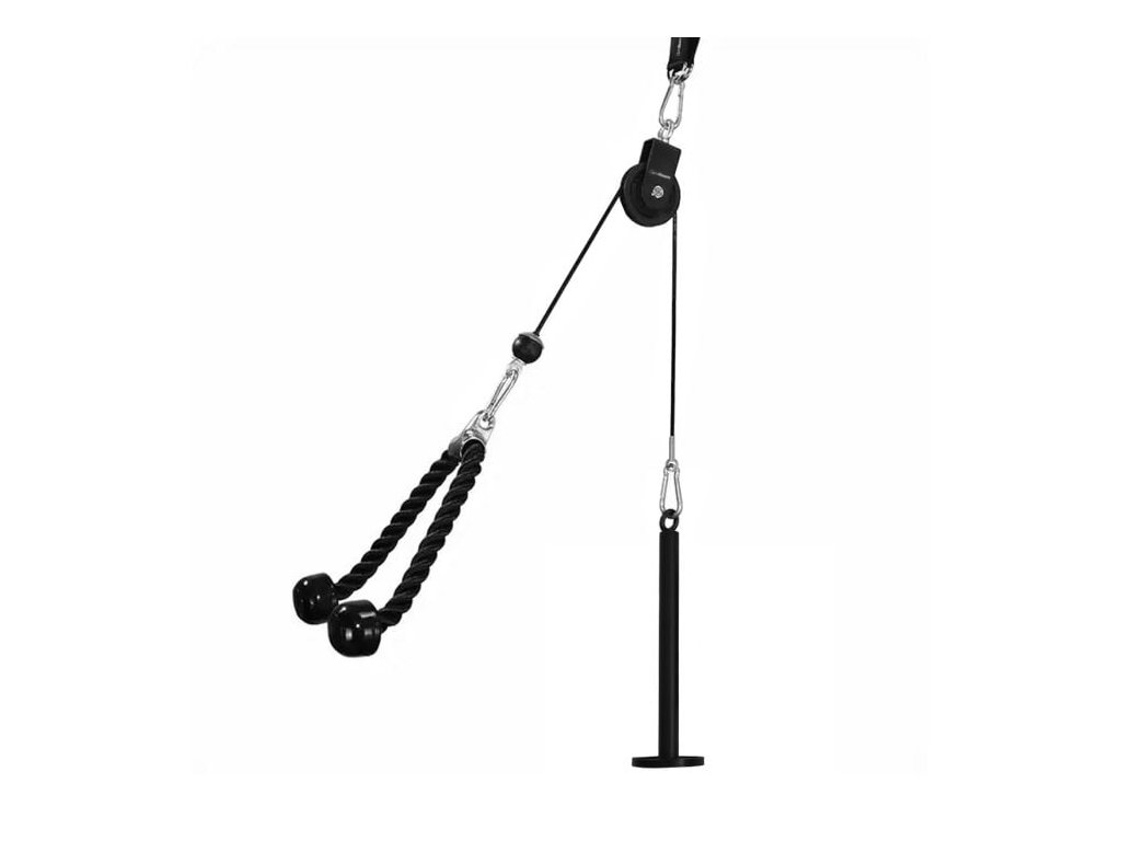 Súčasťou balenia sú dva typy adaptérov, a to tricepsové lano a rovný tricepsový adaptér. Vďaka tomu si môžete zostaviť naozaj pestrý a variabilný tréning. Tieto dva adaptéry vám umožnia zapojiť do tréningovej rutiny tricepsové extenzie, sťahovanie kladky úzkym podhmatom (Underhand Close Grip Lat Pulldown), sťahovanie kladky s vystretými rukami (Straight Arm Lat Pulldown), Face Pull a mnoho ďalších efektívnych cvikov.